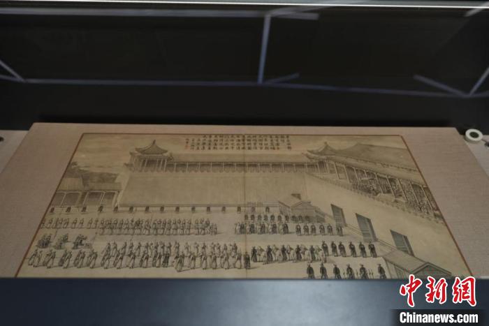 17世紀(jì),隨荷蘭使團(tuán)出行的約翰·尼霍夫在版畫中描繪了使團(tuán)在太和殿廣場(chǎng)等待順治帝接見的場(chǎng)面;堪稱18世紀(jì)銅版畫藝術(shù)的巔峰之作《乾隆平定準(zhǔn)部回部戰(zhàn)圖》,于乾隆年間由意大利人郎世寧等宮廷西洋畫師奉旨繪制。展覽展出了《乾隆平定準(zhǔn)部回部戰(zhàn)圖》的其中一幅作品真跡,繪圖精美、鐫刻精良,難得一見。