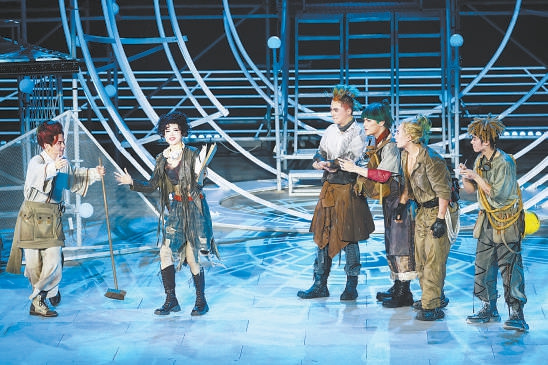 “劇中有句話叫‘真愛無坦途’?!标P(guān)渤說,它不僅在莎翁寫下的精巧故事中,也外化在了這版《仲夏夜之夢(mèng)》的肢體表達(dá)上,“我們?cè)黾恿撕芏嘧?、跑、摔、爬的?dòng)作,同時(shí),在這樣的環(huán)境里,演員們的表演必須比平時(shí)放大夸張?!蔽枧_(tái)呈現(xiàn)上,一些著意設(shè)計(jì)的坡道、臺(tái)階也增強(qiáng)了追尋真愛的“坎坷”感,舞美設(shè)計(jì)張鹍鵬以錯(cuò)落有致框架結(jié)構(gòu)勾勒出城邦、森林的虛實(shí)場(chǎng)景,構(gòu)筑起似真非真的表演空間,帶來了封閉式劇場(chǎng)無法提供的戲劇體驗(yàn)。