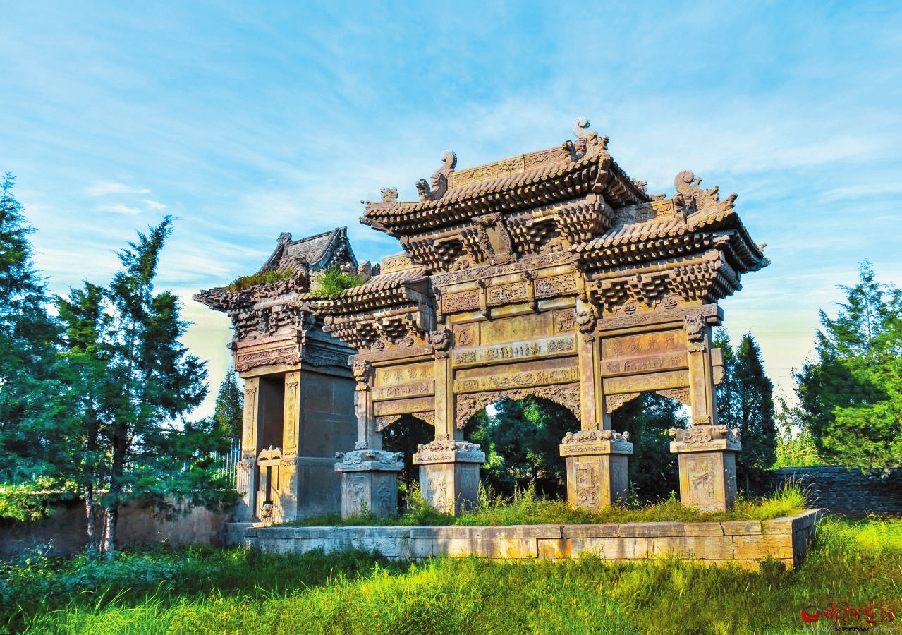坐落于村中的朱氏牌樓是晚清中儀大夫、陜西延榆綏兵道加鹽運(yùn)使武訪疇為其母所修的節(jié)孝牌坊。它不僅見證了朱氏家族的輝煌歷史,也反映了當(dāng)時(shí)社會(huì)的文化風(fēng)貌,承載著豐富的歷史文化內(nèi)涵,為第八批全國(guó)重點(diǎn)文物保護(hù)單位。牌樓有主坊和配坊兩座,主坊矗立在村內(nèi)南街,面寬三間,四柱三樓,重檐歇山頂,高近11米、寬15米。欄板內(nèi)剔底雕刻成一幅幅人物故事圖案,霸王柱間鏤雕丹鳳朝陽。匾形走馬板上書“柏舟矢志”“竹柏流芳”各四字。牌坊下檐明間置匾一塊,書“圣旨”二字,兩次間匾書分別為“懿范”“徽音”。配坊在村南,高8米有余,四柱三門,單檐歇山頂,規(guī)模略小,造型風(fēng)格與主坊一樣,皆為石雕藝術(shù)精品。