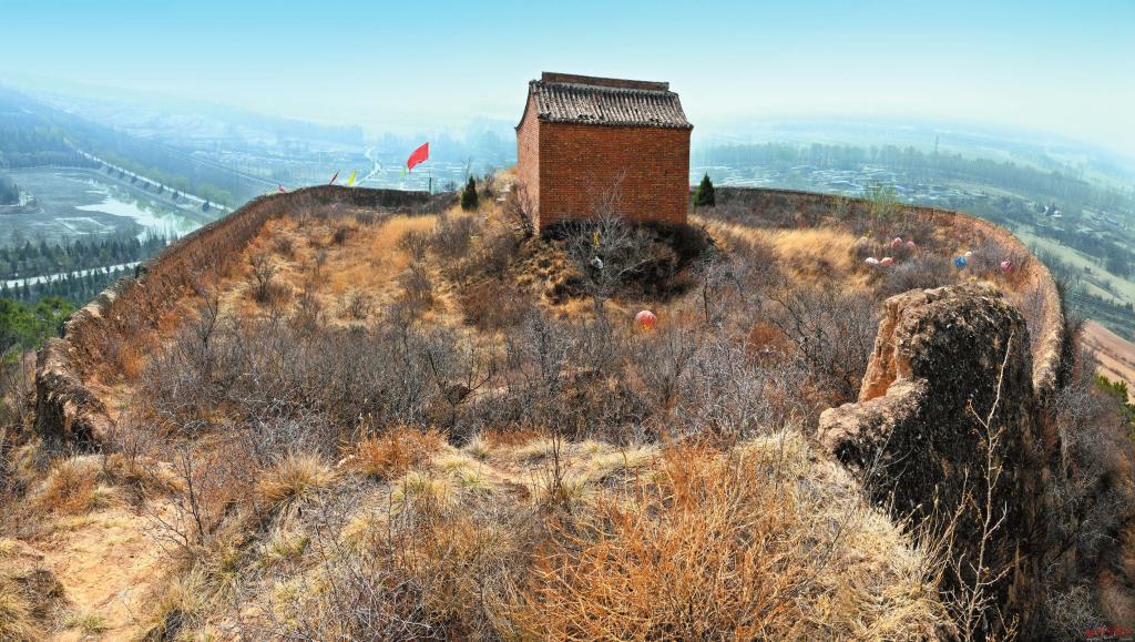 二是龍頭山兵寨。位于定襄縣受祿鄉(xiāng)上湯頭村東北的龍頭山上。堡寨依據(jù)地形呈橢圓形,南北走向,堡門南開,北端為高大的敵臺,整體形似烏龜,敵臺似為龜首。堡墻外徑南北最長處有60米,東西最寬處有38米。堡墻為土筑,原外包石塊,后被扒掉,只存有堡北端不到2米長的一段。內(nèi)部的土墻四周完整,高約2-3米,厚60-100厘米。