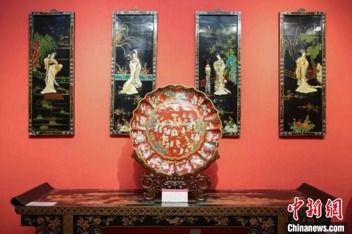 哈爾濱展示中心展出的金漆鑲嵌精品包括屏風、牌匾、器皿等多個品類。哈爾濱市博物館 供圖