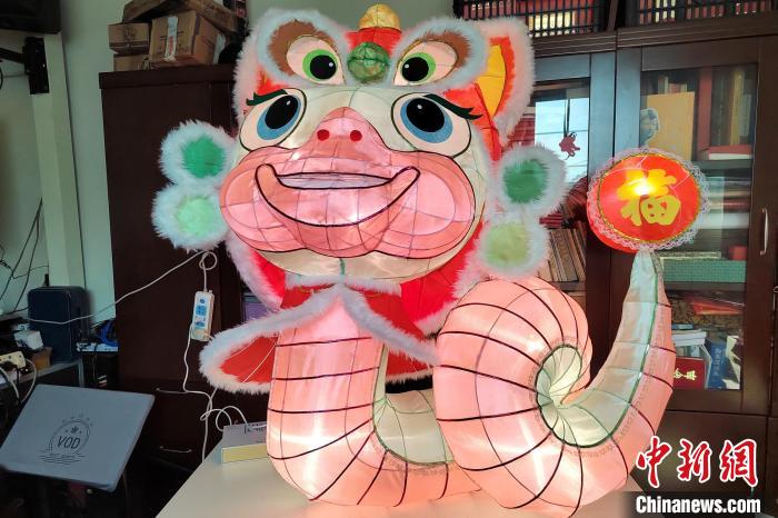 2月8日,楊銘在工作室展示泉州花燈制作技藝。 吳冠標 攝 楊銘說,泉州花燈除了技藝精湛,還有造型美、色彩美和紋飾美等特點。與許多傳統(tǒng)泉州花燈匠人偏愛大紅大黃等色彩不同,楊銘更常用藍、綠等色彩作為花燈的主色調,同時注重花燈的結構比例,力求帶給賞燈者視覺沖擊與美好的審美體驗。 此外,生肖花燈也是楊銘每年必做的花燈種類??紤]到許多父母會帶孩子一同賞燈,他會將卡通元素融入生肖花燈之中,以迎合小朋友們的喜好,激發(fā)他們對泉州花燈的興趣。