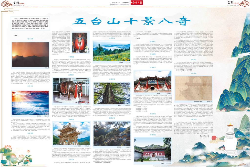 五臺山十景八奇有新舊之別,史上形成的十景為:大社銅牛、玉花羅漢、碧山字塔、臺麓字崖、古佛牌樓、羅睺現(xiàn)佛、菩薩銅鍋、顯通銅殿、山西土地和五郎鐵棍;八奇為:佛洞轉(zhuǎn)生、摩崖造字、龍洞幻景、華嚴字塔、石罅映月、萬年積冰、臺巔天池和清涼大石。這十景八奇歷經(jīng)滄桑更迭,有的現(xiàn)在不存在了,有的已經(jīng)殘破不堪。后經(jīng)一些學(xué)者長期考察,比較研究,從眾多的文物景觀中篩選出一些世所罕見的能夠代表五臺山特色的奇景,謂之五臺山新的十景八奇。