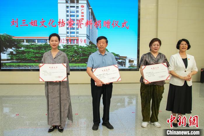 當(dāng)天活動(dòng)現(xiàn)場(chǎng)還舉行了劉三姐文化檔案捐贈(zèng)儀式,柳州《劉三姐》創(chuàng)作組曾昭文、龔邦榕、鄧凡平、牛秀四位作家簽名的創(chuàng)作于1991年的彩調(diào)劇《劉三姐》(第九方案)封筆之作的手稿原件,也由其中的作者曾昭文之子捐贈(zèng)。另外,廣西戲劇院、“劉三姐”扮演者傅錦華女兒傅彬彬等捐贈(zèng)了相關(guān)“劉三姐”照片,廣西壯族自治區(qū)檔案館領(lǐng)導(dǎo)為捐贈(zèng)者們頒發(fā)了收藏證書。