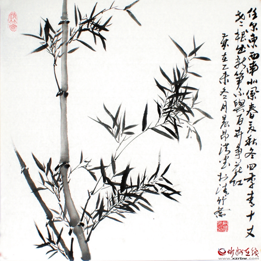 邢晨昂好竹,表述的不是生活,而是一種心境。他的心是透明而簡單的,與他相處,踏實(shí)而舒服。畫竹,不需有太多的想法,就是很舒服地欣賞。因?yàn)槟枪P下的墨竹如同自然生長一樣,毫不做作,毫不矯情。疏影橫斜、悠然瀟灑,這是一種心態(tài)。