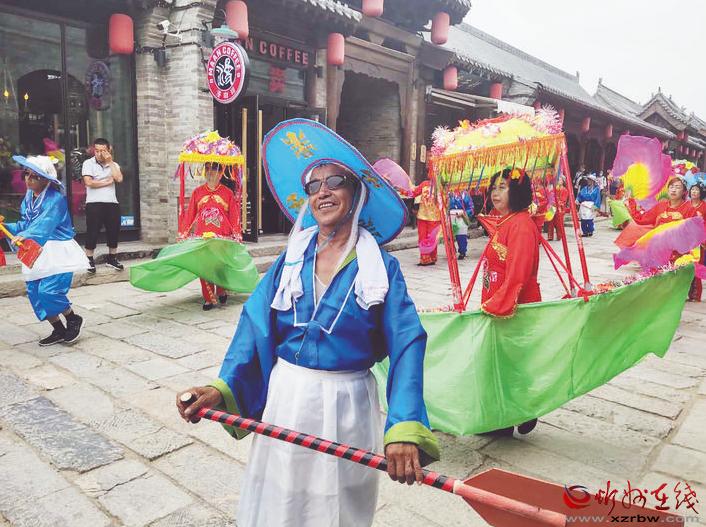 漫步在忻州古城街頭,一個個具有濃厚地方文化特色的表演節(jié)目,如五臺秧歌、巾幗鼓舞、五臺山佛樂、旱船表演等輪番上演,讓游忻州古城的市民和外地游客深深領(lǐng)略到了五臺的風土人情,近距離感受到了五臺縣非物質(zhì)文化遺產(chǎn)的魅力和特色文化旅游資源的風采。