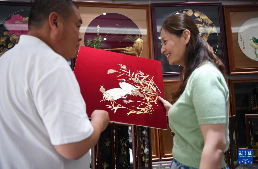 除了照顧好傳習(xí)基地的學(xué)員,夫妻倆目前還在琢磨著擴(kuò)展蘆葦畫的底色,同時(shí)升級(jí)畫框,讓蘆葦畫適合更多風(fēng)格的室內(nèi)場(chǎng)景,擴(kuò)大銷路。新華社記者 張浩然 攝