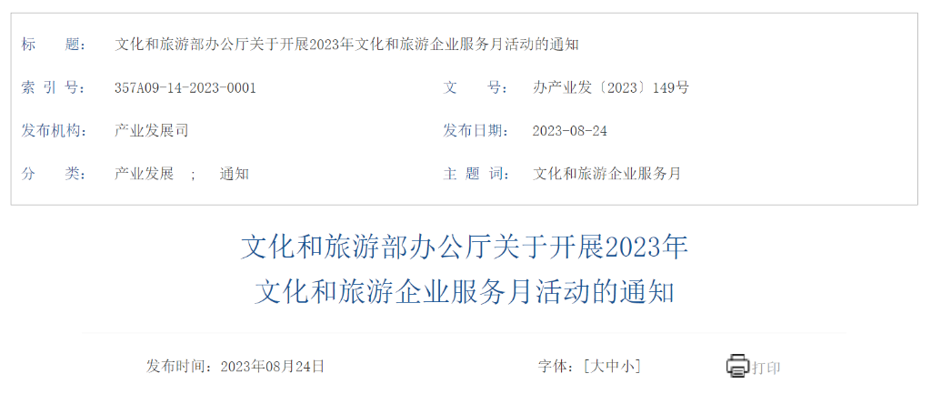 記者8月24日從文化和旅游部了解到,文化和旅游部將于9月開展2023年文化和旅游企業(yè)服務月活動。服務對象為各類文化和旅游企業(yè),包括文化和旅游領(lǐng)域個體工商戶。