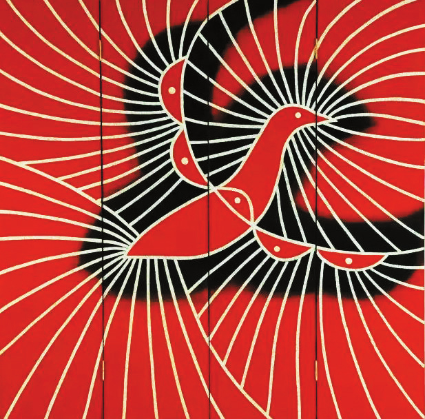 藝術家潘草原的《上升勢態(tài)》系列在制作方法上延續(xù)傳統(tǒng)工藝,使用不同質地的瓦灰調入大漆制作背景,在表現(xiàn)形式上徹底顛覆固有的畫面結構,由符號化的裝飾元素組成。部落文化圖騰的抽象紋樣代表某種精神象征,將肉眼不可見的精神現(xiàn)象物質化。有別于傳統(tǒng)“平光亮”的打磨工藝,藝術家利用瓦灰打磨后的不同灰度層次,在畫面中形成似霧朦朧的氤氳氛圍。鑲嵌的寶石、金屬和螺鈿,不同材質折射的光澤質感與大漆的黑、瓦灰形成鮮明對比,符號圖騰在二維平面中顯示一種“上升勢態(tài)”。如今,在世界文明交流互鑒的新時代,深得中華傳統(tǒng)文化神韻的大漆藝術應該秉持兼收并蓄的原則,煥發(fā)出新的時代光彩。(黃雨田)