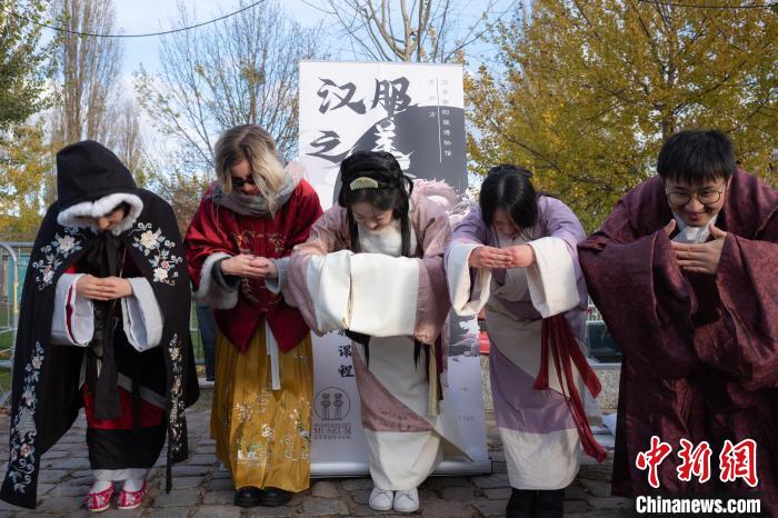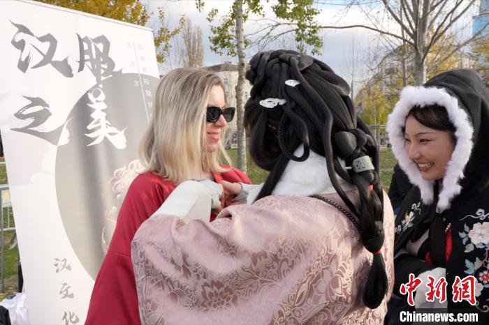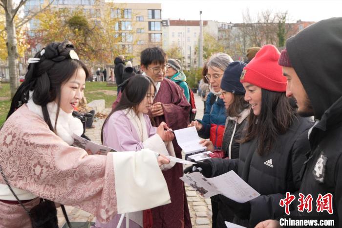 中新網(wǎng)柏林11月26日電 “漢服之美·漢服秀體驗(yàn)活動(dòng)”26日在柏林墻公園舉行。該活動(dòng)由漢景帝陽(yáng)陵博物院與德國(guó)漢文化藝術(shù)交流中心共同舉辦,吸引了眾多旅行者與往來(lái)行人互動(dòng)。