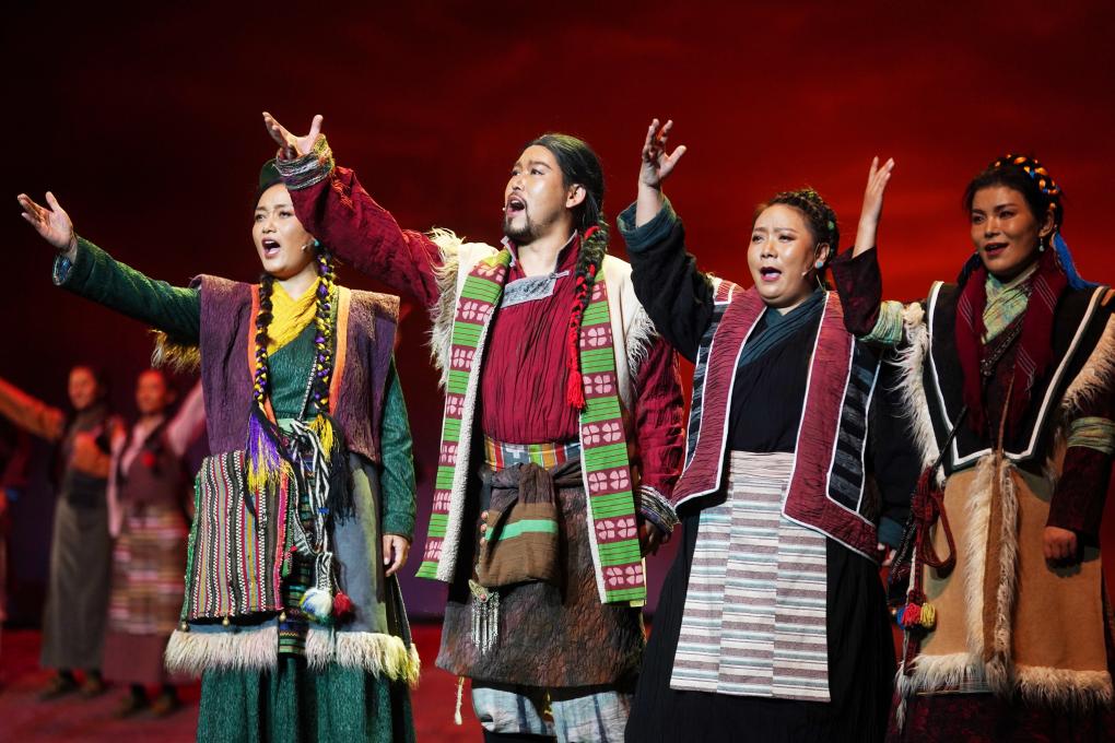 由西藏自治區(qū)歌舞團(tuán)演繹的民族歌舞劇《天邊格?;ā吠ㄟ^民族舞和交響樂結(jié)合的形式,展現(xiàn)了西藏普通一家父女兩代人在惡劣自然條件下默默扎根祖國邊陲,守邊衛(wèi)國的感人故事。