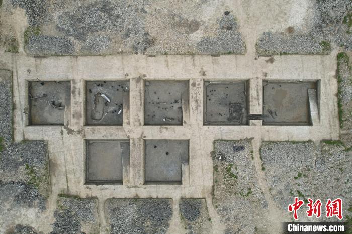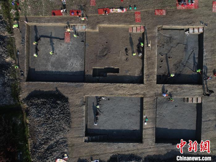 樹橋遺址III區(qū)發(fā)掘場景航拍。寧波市文化遺產(chǎn)管理研究院供圖