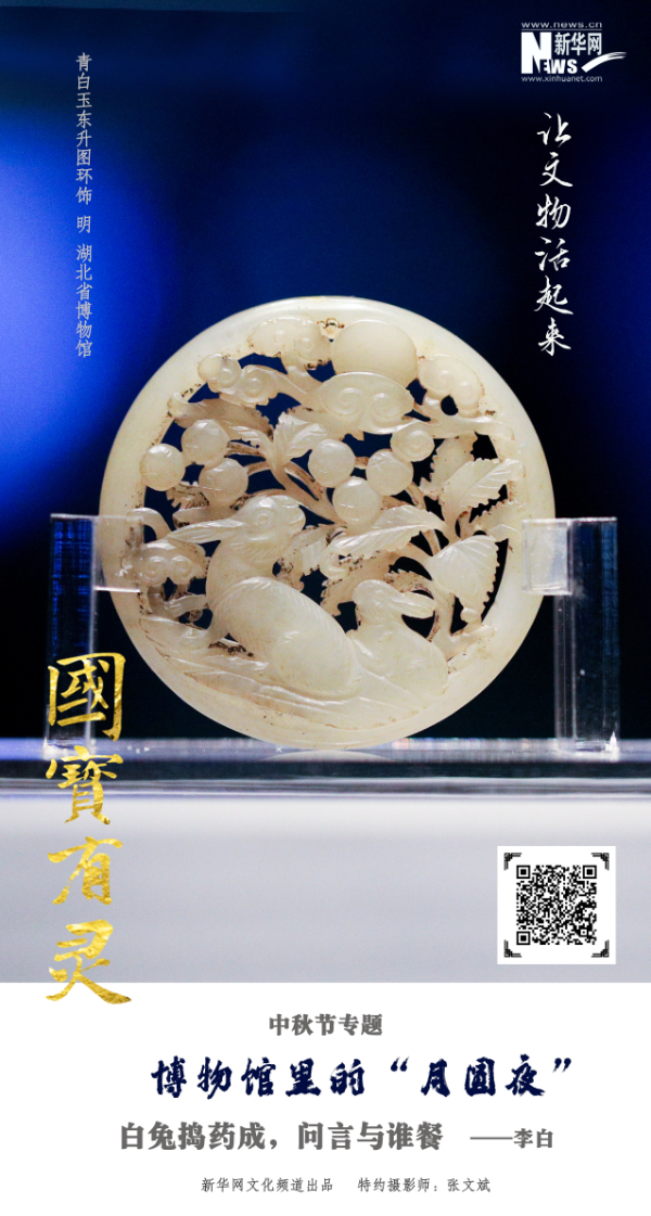 編者按:又是一年中秋節(jié)到,值此佳節(jié)到來之際,新華網(wǎng)文化頻道“國寶有靈”文化IP特推出中秋節(jié)專題《博物館里的“月圓夜”》,精選了六件帶有月亮、玉兔等元素的博物館中的文物,并配有與月有關(guān)的詩句,制作成了海報,希望借由這些富有古老文化內(nèi)涵的國寶珍品,讓您感受到傳統(tǒng)中秋文化的魅力,為您的節(jié)日增添更多意趣,從中體悟到中華優(yōu)秀傳統(tǒng)文化的精髓所在,有所增益,有所感悟。新華網(wǎng)文化頻道在此祝您闔家團(tuán)圓,幸福安康!