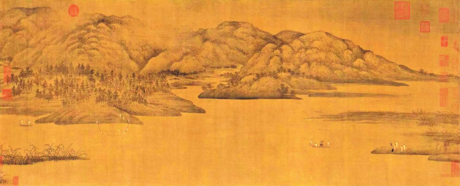南方畫派又稱“江南畫派”,多是描繪江南山水風(fēng)光,以平淡天真的洲渚峰巒為畫面主體,淡墨輕嵐,煙云籠罩,因此頻繁采用適宜表現(xiàn)土質(zhì)山巒的“披麻皴”。開創(chuàng)者董源、巨然也是師徒關(guān)系,畫史并稱“董巨”。董源的山水畫多以淡墨描寫江南明麗的風(fēng)光,所謂“平淡天真”“一片江南也”,大量運(yùn)用繁密的點(diǎn)子,稱“落茄點(diǎn)”,作品有《瀟湘圖》《夏山圖》等。