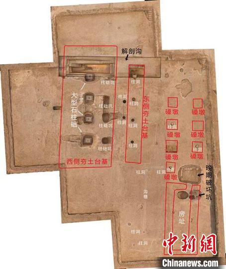 圖為河南洛陽(yáng)白草坡東漢陵園遺址發(fā)現(xiàn)的鐘虡類建筑遺址。洛陽(yáng)市考古研究院供圖