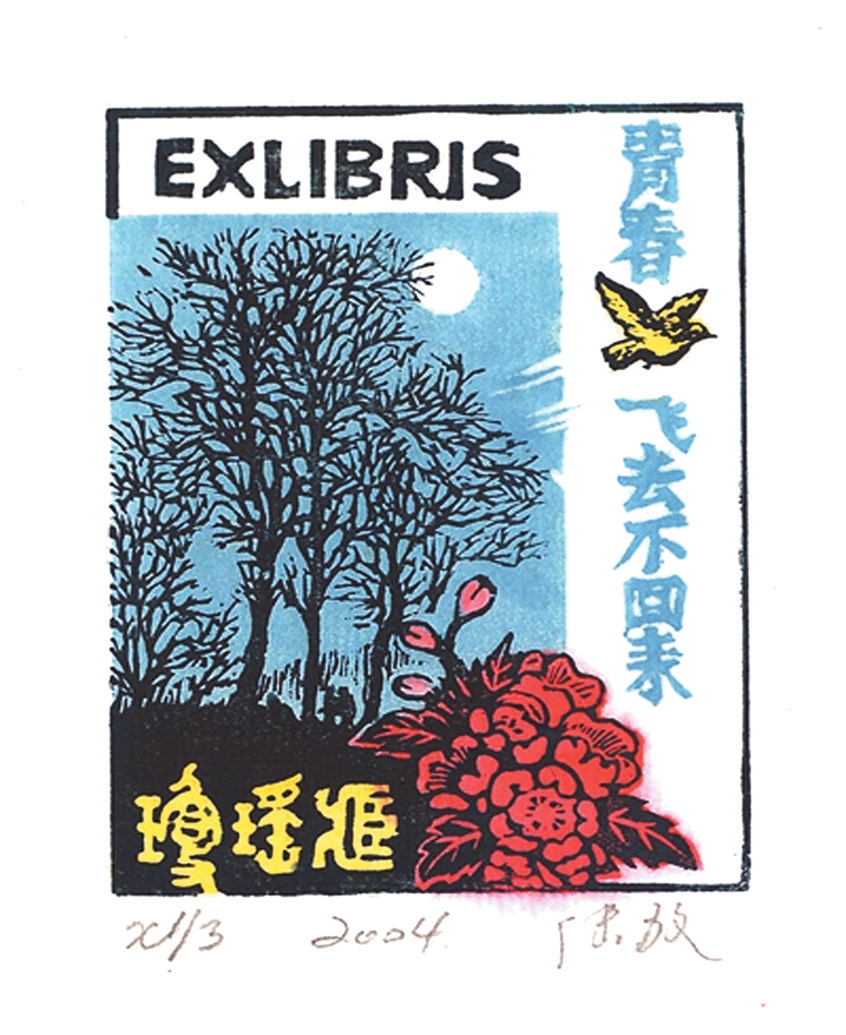 創(chuàng)作一枚專屬于自己的水印木刻藏書票,是一場頗富詩意與匠心的藝術之旅。從構(gòu)思到設計,從刻板到印刷,充滿著創(chuàng)作者對文化的敬畏、對書籍的熱愛以及對美好的期許。水印木刻藏書票的制作并不簡單,會經(jīng)歷各種各樣的意外——紙張的濕度、顏色的厚薄、錯版等都會影響畫面效果。但這何嘗不是一次深度的文化體驗?在設計中認知自我,與書籍神交;在勞作中體悟精益求精的工匠精神;在印制中領略千變?nèi)f化的色彩韻味。當用刻刀在木板上刻下自己的名字,馬蓮在紙的背面輕輕摩擦,墨色慢慢洇化,心靈在方寸之間得到浸潤。如果把創(chuàng)作過程寫成一本書,水印木刻帶來的奇妙感受將是書中最精彩的情節(jié)。