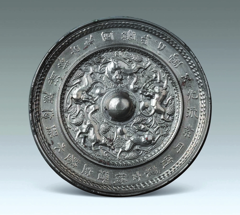 1966年陜西省西安市動(dòng)力廠出土了一面光流素月瑞獸鏡,鏡銘為“光流素月,質(zhì)稟玄精。澄空鑒水,照回凝清。終古永固,瑩此心靈”。外圍銘文帶與內(nèi)區(qū)瑞獸紋相映成趣,展示出獨(dú)具特色的藝術(shù)美感。