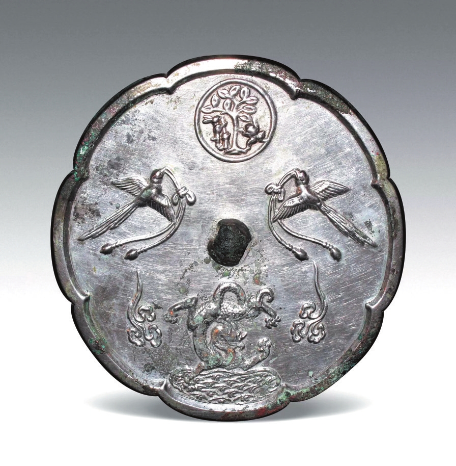 盤龍雙鵲月宮鏡