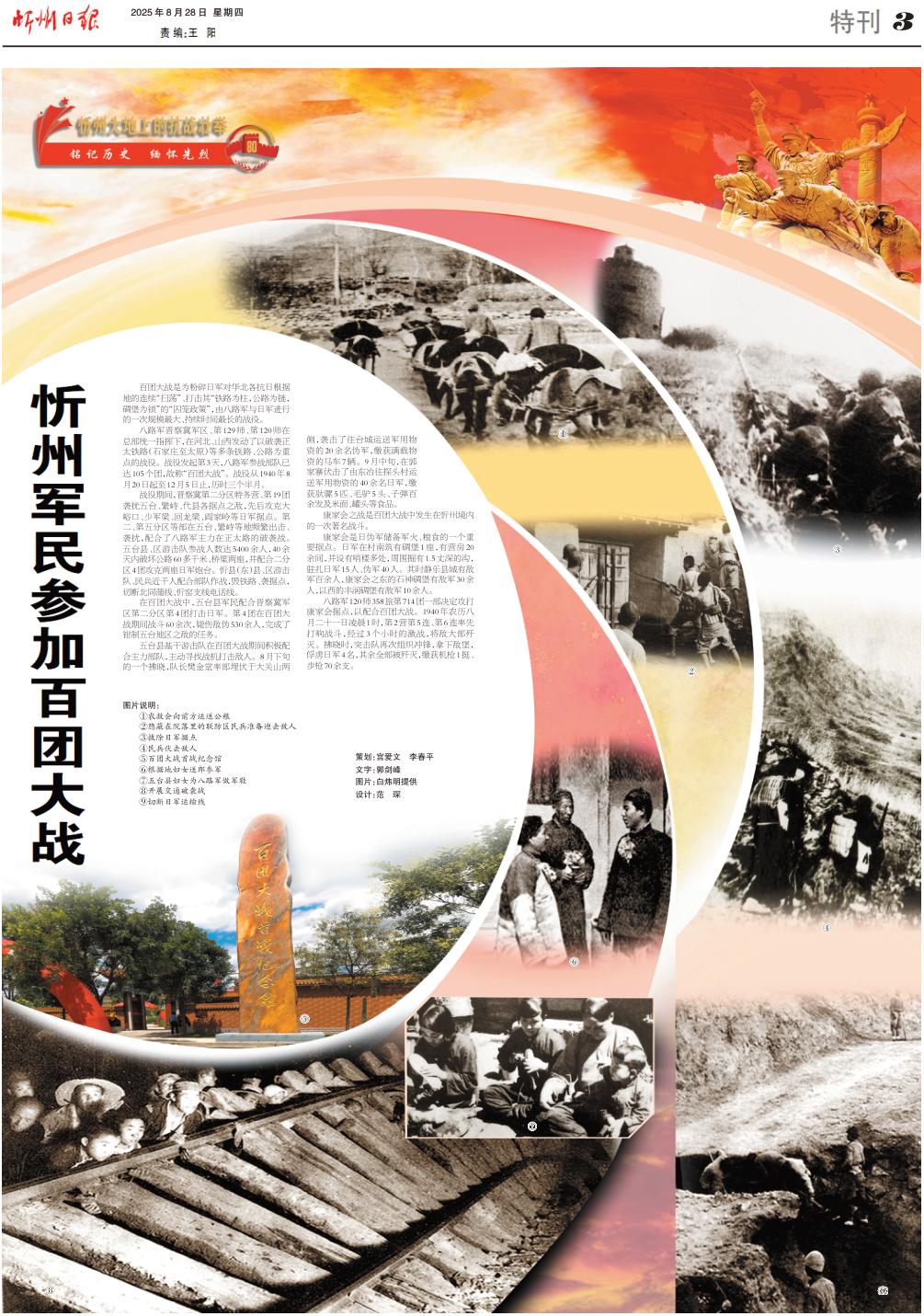 在百團(tuán)大戰(zhàn)中,五臺縣軍民配合晉察冀軍區(qū)第二分區(qū)第4團(tuán)打擊日軍。第4團(tuán)在百團(tuán)大戰(zhàn)期間戰(zhàn)斗60余次,斃傷敵偽530余人,完成了鉗制五臺地區(qū)之?dāng)车娜蝿?wù)。