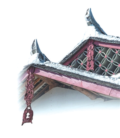 懸魚寓意豐富,蘊含著古人對平安、幸福的向往。懸魚有祈求建筑免遭火災(zāi)的寓意,木結(jié)構(gòu)古建筑怕火,而魚為水中之物,懸魚有水能克火之意。不僅是懸魚,過去古建筑的屋頂上,常裝飾與水有關(guān)的意象,如龍、鴟吻、鰲魚、水草等。懸魚也有祈求吉祥、富貴有余等寓意。魚與“余”“裕”諧音,象征富余、富裕、吉慶有余。魚多子,也體現(xiàn)了人們祈求多子多孫的愿望。有的懸魚下端雕兩條尾部相交的游魚,寓意雙魚喜慶。懸魚除了使用魚的形象,也會采用其他紋樣,如蝙蝠紋樣,取“?!敝?;桃花、荷花、梅花、牡丹等紋樣,寓意吉祥、和美、富貴;花瓶紋樣,象征平安等。后來,懸魚不斷演化,有了卷云如意、飛禽等圖案,造型的式樣也日趨豐富。