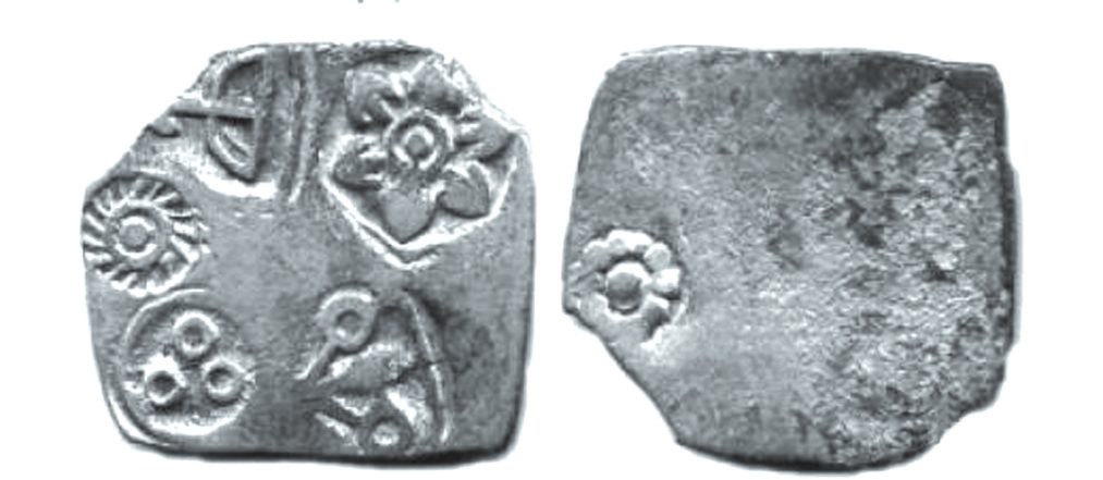 古印度摩揭陀國(guó)孔雀王朝時(shí)期的卡夏帕那銀幣,似乎可以為亞里士多德的說(shuō)法提供佐證??ㄏ呐聊倾y幣的具體起源時(shí)間不詳,其名源自重量單位“卡夏”,形制為切割成型的銀片或銀塊,正面加蓋戳記作為價(jià)值標(biāo)識(shí),戳記數(shù)量通常為一個(gè)至六個(gè)不等。早期的卡夏帕那銀幣可能由民間或地方勢(shì)力發(fā)行,其價(jià)值除了依托銀材本身的重量與成色,很大程度上取決于加蓋戳記的發(fā)行人或認(rèn)證人的信譽(yù)背書(shū)。