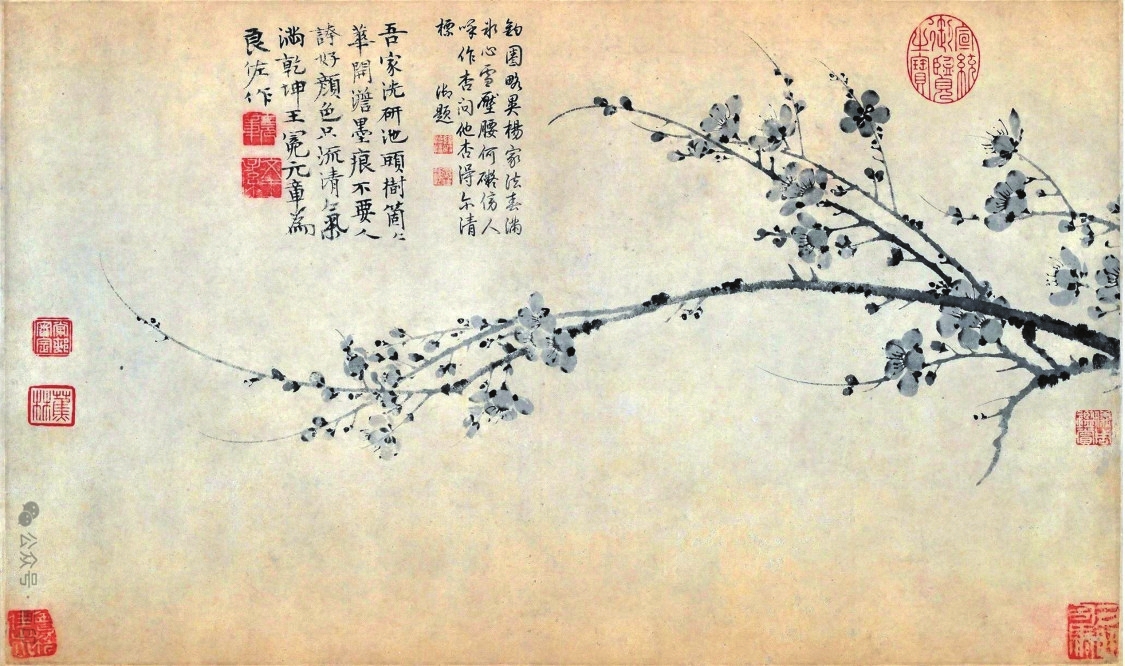 以梅入畫,最早出現(xiàn)于南北朝時(shí)期,不過(guò)并未成氣候,直到宋代,以梅花入題的中國(guó)畫才顯露實(shí)績(jī)。人們所熟知的“梅妻鶴子”典故與北宋隱士林逋有關(guān),雖以愛梅著稱,但他并無(wú)梅花繪畫作品傳世。被稱為“墨梅始祖”的僧人仲仁亦活躍于宋代,他以水墨深淺描摹梅花,全然摒棄色彩,后世稱之為“墨梅”。