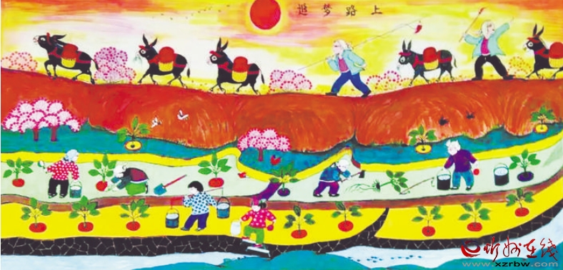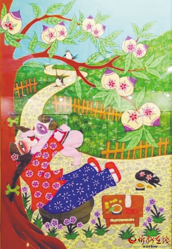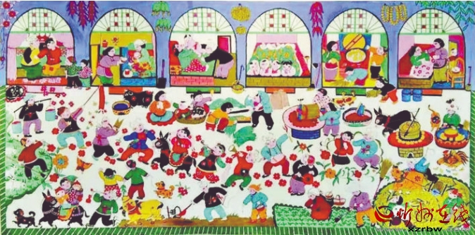 炕圍畫又稱“墻圍畫”,是一種中國民間常見的室內裝飾畫。忻州處于高寒地帶,在農村家家戶戶都用火炕取暖御寒,炕上的墻面極易脫落起皮,蹭臟衣物被褥。于是人們以刷墻所用的白土調以膠水,在環(huán)炕的墻上涂高約二尺的“圍子”,既保護了墻面,又使人們免遭臟衣污物之累。后來,炕圍畫逐漸發(fā)展為以顏料做底、色彩畫花、桐油涂罩,既鮮艷明亮,又堅固耐久。日常臟污了,用濕布擦拭,則又光亮如新。