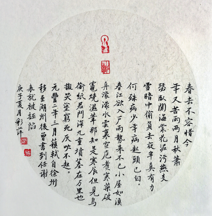 遺山詩社近期刊登的呂彩萍作品專輯,內容上大致可分兩類:一是有關抗疫的時事情狀;二是吟詠梅蘭竹菊等花草植物以及四季更替、重要節(jié)日等,托風雅之詞,明自我心性。從藝術角度看,這些作品或沉思、或靈動,思緒開闊,韻致嫣然,詞畫有機相融,用典自如妥切,抒情性于辭采,詠雅志而不自矜。涵詠其間,若瓊花滿地,玉階生輝,天籟清風吹散密云,月下疏影暗吐清香。仔細品讀,可感受到作品呈現(xiàn)出的四種藝術之美,本文試作解讀。