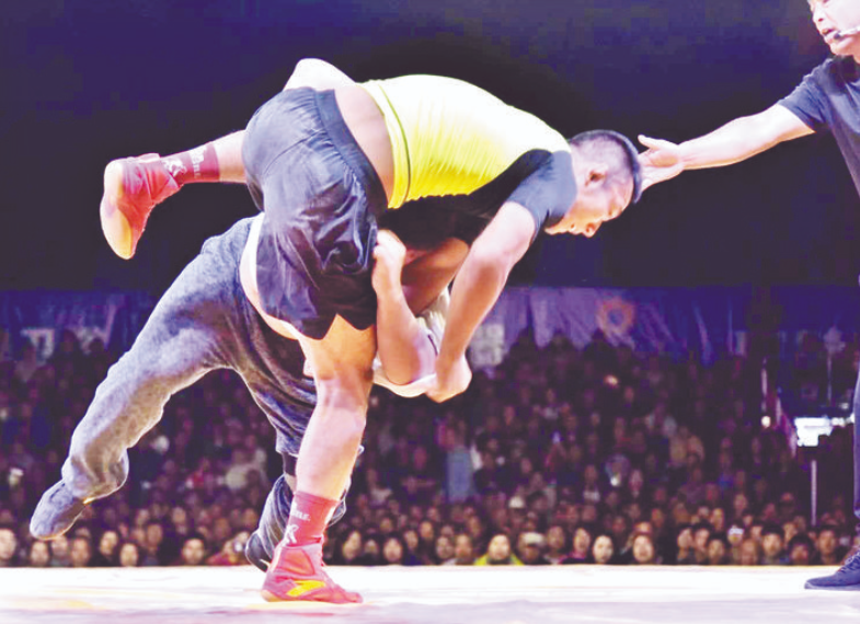 金代大文豪元好問曾在《續(xù)夷堅(jiān)志》中記:“秀容東南雙塑王增壽,號為外力,善角抵,人莫能敵?!睋?jù)清光緒版《續(xù)修崞縣志》“風(fēng)俗”中載:“元宵,鄉(xiāng)村稍有燈火,城市則鰲山燈海,秧歌、社火、角抵之戲喧闐街巷,親友過從游觀焉?!笨梢?,從金元到明清,忻州、原平(舊稱崞縣)的摔跤活動十分盛行,而在書面語里均稱為“角抵”。
