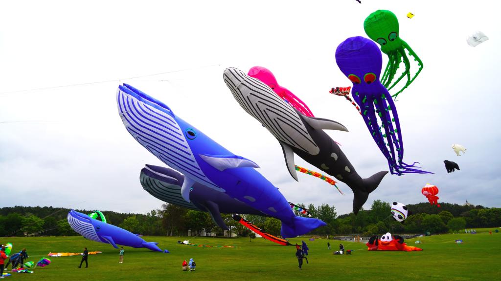 本次風(fēng)箏節(jié)上,大蜈蚣、大章魚等各式各樣造型的軟體風(fēng)箏在木蘭草原天空中隨風(fēng)游動(dòng),上演“天空動(dòng)物園”,場(chǎng)面蔚為壯觀。其中,長(zhǎng)度超過(guò)40米的巨型鯨魚風(fēng)箏受到了眾多游客的熱捧。
