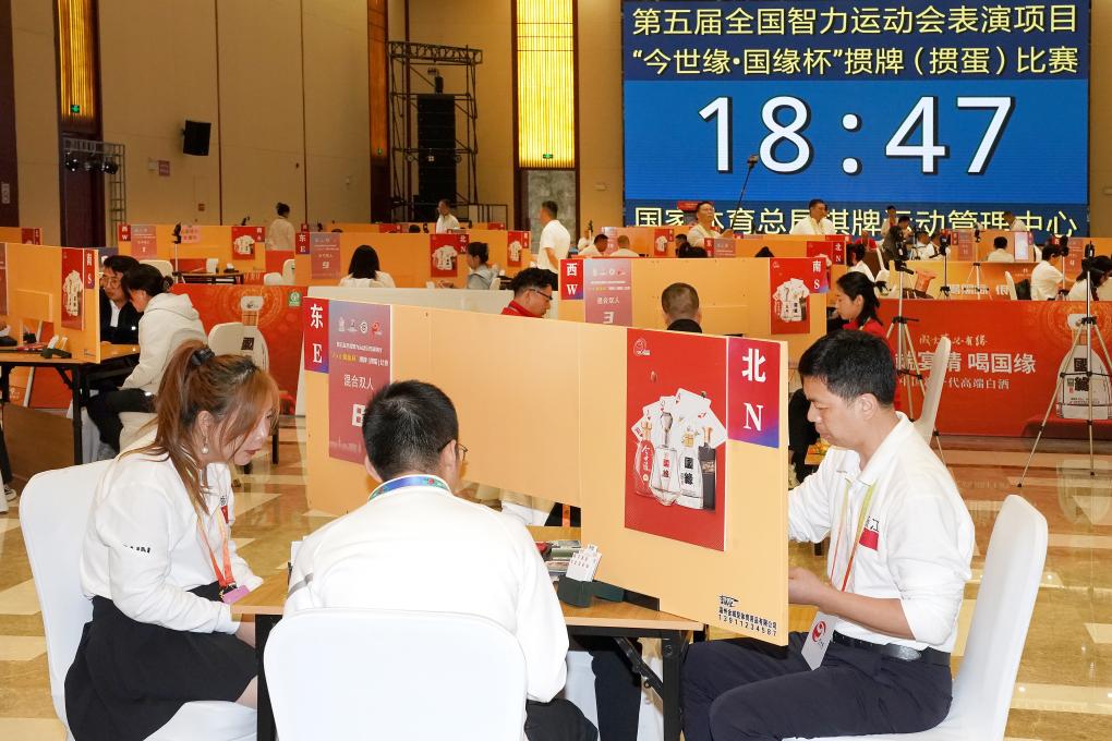 這是摜蛋項(xiàng)目首次進(jìn)入智運(yùn)會,比賽設(shè)男子雙人賽、女子雙人賽、混合雙人賽3個(gè)競賽項(xiàng)目,執(zhí)行國家體育總局棋牌運(yùn)動(dòng)管理中心審定的《競技摜蛋競賽規(guī)則(試行)》,分預(yù)賽、決賽兩個(gè)階段進(jìn)行。預(yù)賽采用場分制瑞士積分編排賽,進(jìn)行7輪比賽,決賽采用豪威爾制,進(jìn)行9輪比賽。比賽均采用計(jì)算機(jī)預(yù)制比賽用牌,全場同牌,以得分決定名次。