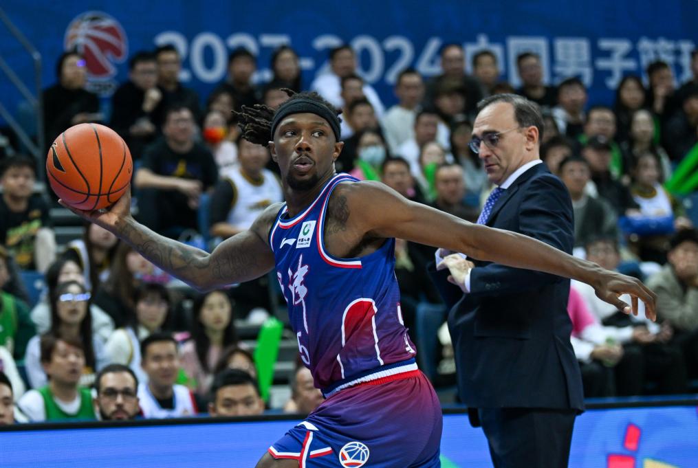 11月6日,天津隊(duì)球員馬克(左)在比賽中。新華社記者 孫凡越 攝