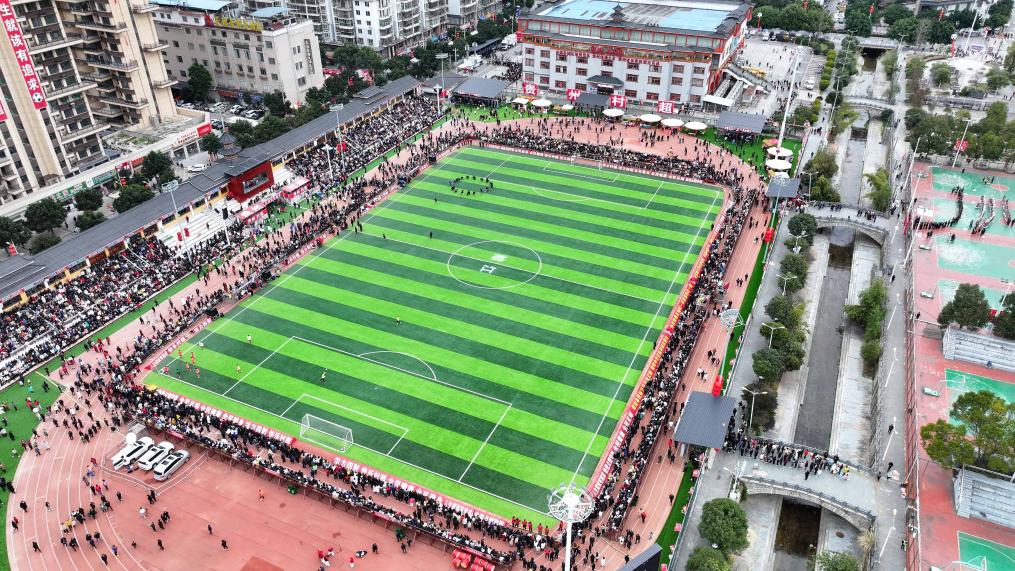2月3日,觀眾在“村超”賽場等待活動(dòng)開始(無人機(jī)照片)。新華社記者 劉續(xù) 攝