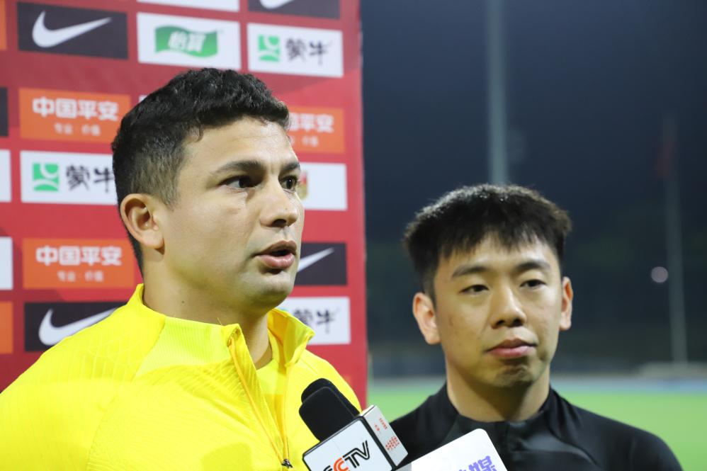 中國隊球員艾克森接受采訪(實習(xí)生蘇亦薇攝)