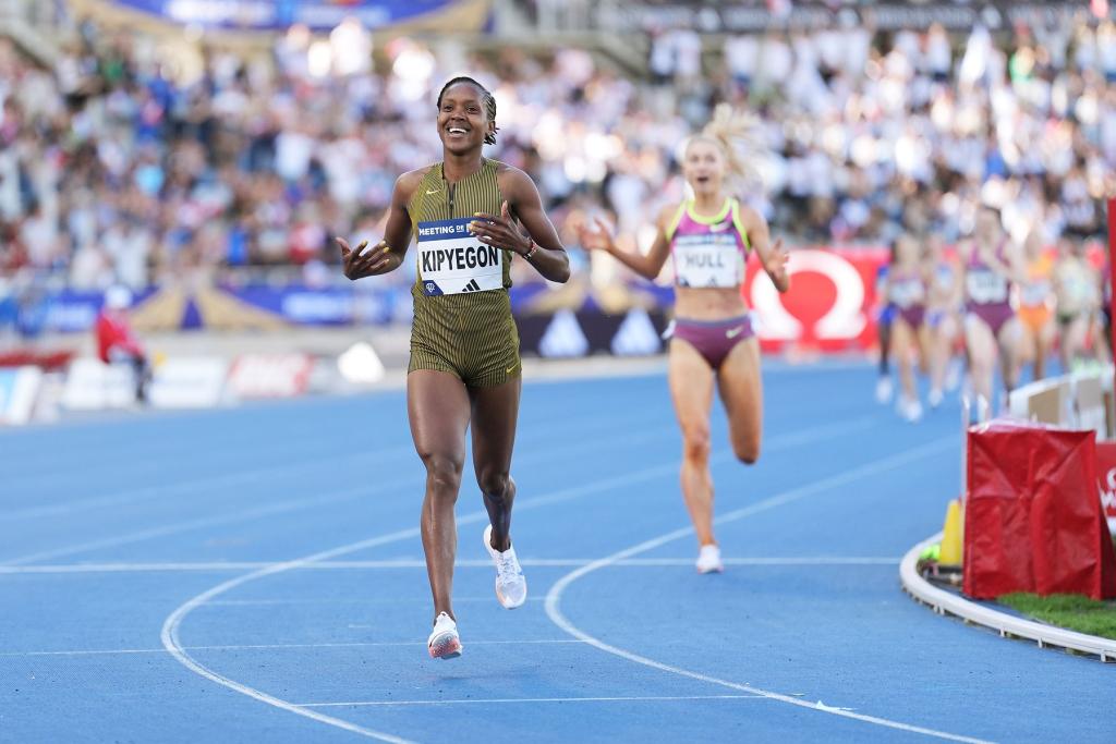 去年的鉆石聯(lián)賽巴黎站比賽中,基普頁真曾創(chuàng)造女子5000米世界紀(jì)錄。此次她參加的項目是1500米。在配速員的引領(lǐng)下,肯尼亞人前800米用時2分4秒,隨后配速員退出賽道,基普頁真速度不減,最終她以3分49秒04的成績率先撞線,將自己去年在鉆石聯(lián)賽佛羅倫薩站創(chuàng)造的世界紀(jì)錄提升了0.07秒。