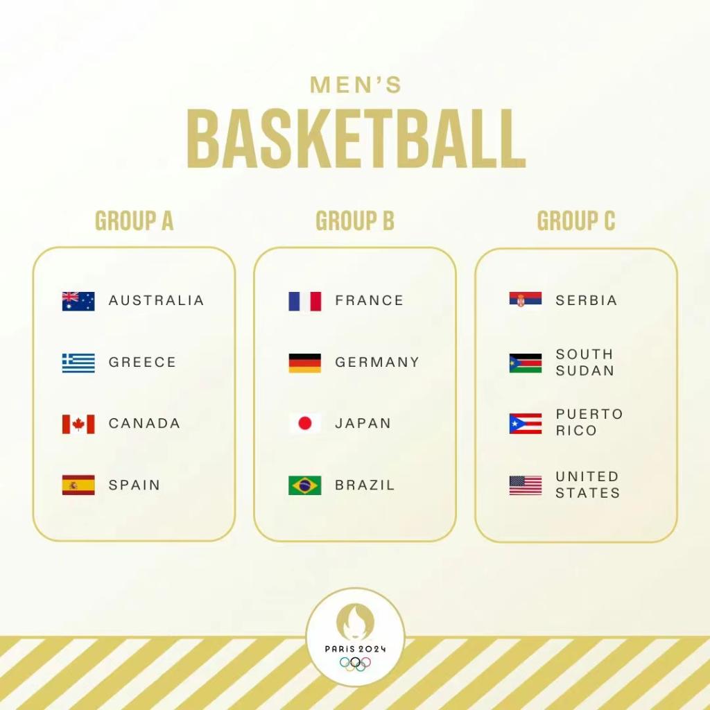 巴黎奧運(yùn)會(huì)男籃比賽7月27日在法國(guó)里爾開始,揭幕戰(zhàn)是澳大利亞隊(duì)對(duì)陣西班牙隊(duì)。小組賽每組前兩名直接晉級(jí)八強(qiáng),另外兩個(gè)名額給小組賽戰(zhàn)績(jī)最好的兩支第三名球隊(duì)。小組賽階段結(jié)束后,四分之一決賽開始將移師巴黎繼續(xù)角逐,直至產(chǎn)生最后的金銀銅牌。