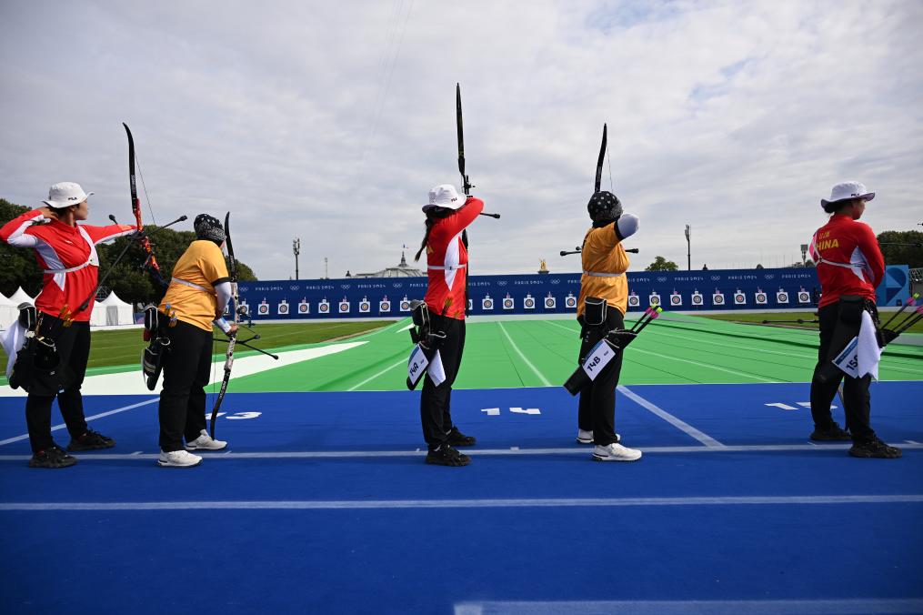 當(dāng)日上午,巴黎榮軍院上空晴空朗朗,64名女子射箭運(yùn)動(dòng)員在這處歷史建筑旁展開爭(zhēng)奪。中國(guó)隊(duì)派出楊曉蕾、安琦軒、李佳蔓3人出戰(zhàn)女子個(gè)人排名賽。