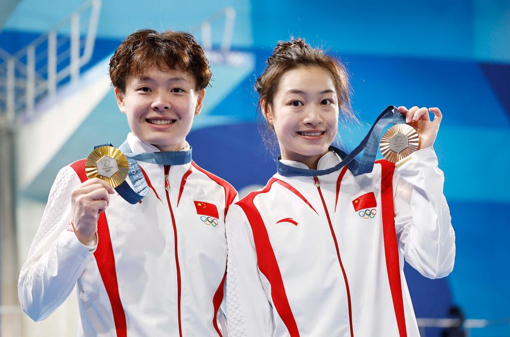 8月9日,冠軍中國選手陳藝文(左)、季軍中國選手昌雅妮在頒獎(jiǎng)儀式后。新華社記者 張玉薇 攝