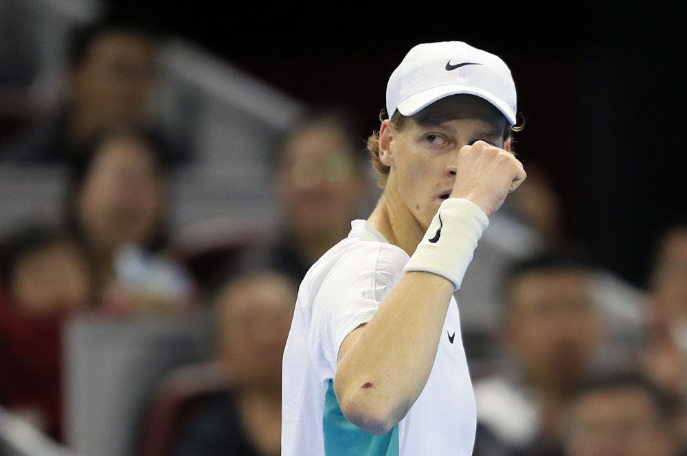 2023年10月4日,中國(guó)網(wǎng)球公開(kāi)賽男子單打決賽中,意大利選手辛納以2比0戰(zhàn)勝俄羅斯選手梅德韋杰夫,奪得冠軍。新華社記者 雒圓 攝