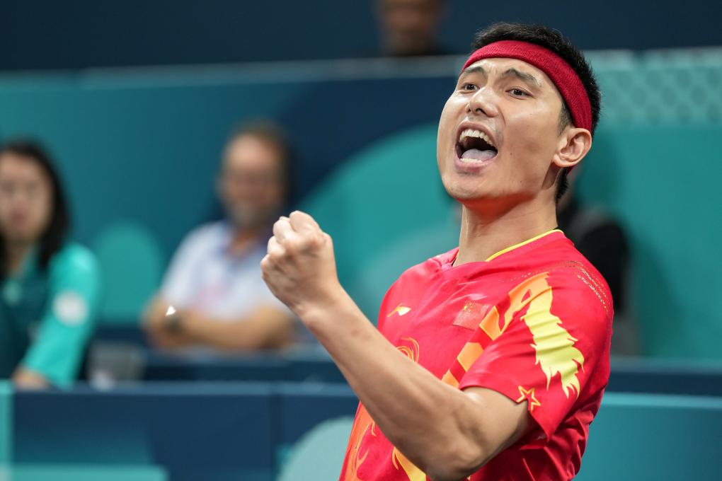 9月5日,中國(guó)選手馮攀峰在比賽中慶祝得分。新華社記者 張鋮 攝