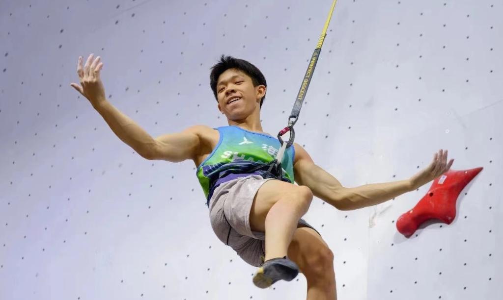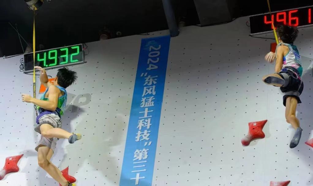 男子半決賽中,剛剛在世青賽中摘金的趙一程對陣世界杯金牌得主、貴州隊選手龍見國。15歲的小將爬出4秒95強勢晉級,這一成績在巴黎奧運會上也相當有競爭力。
