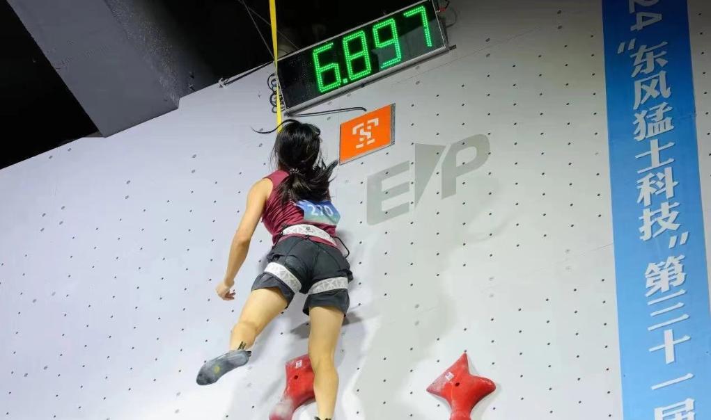 決賽面對2007年出生的湖南小將儲守宏,趙一程以4秒93的個人最好成績奪冠。儲守宏也爬出了4秒96的好成績。