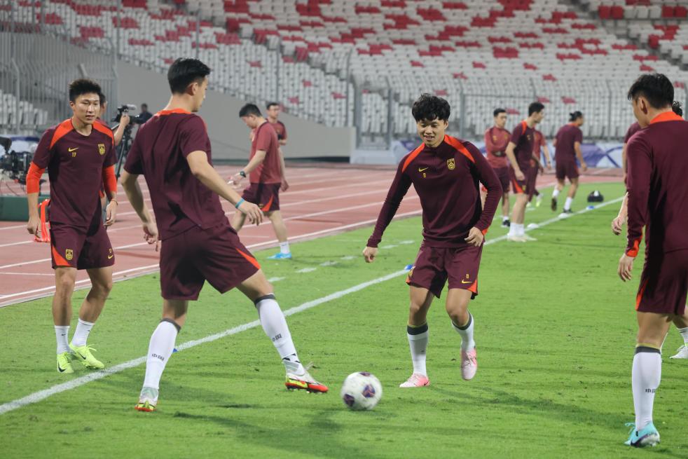 11月13日,中國(guó)國(guó)家男子足球隊(duì)在巴林國(guó)家體育場(chǎng)進(jìn)行適應(yīng)性訓(xùn)練。新華社記者 王海洲 攝