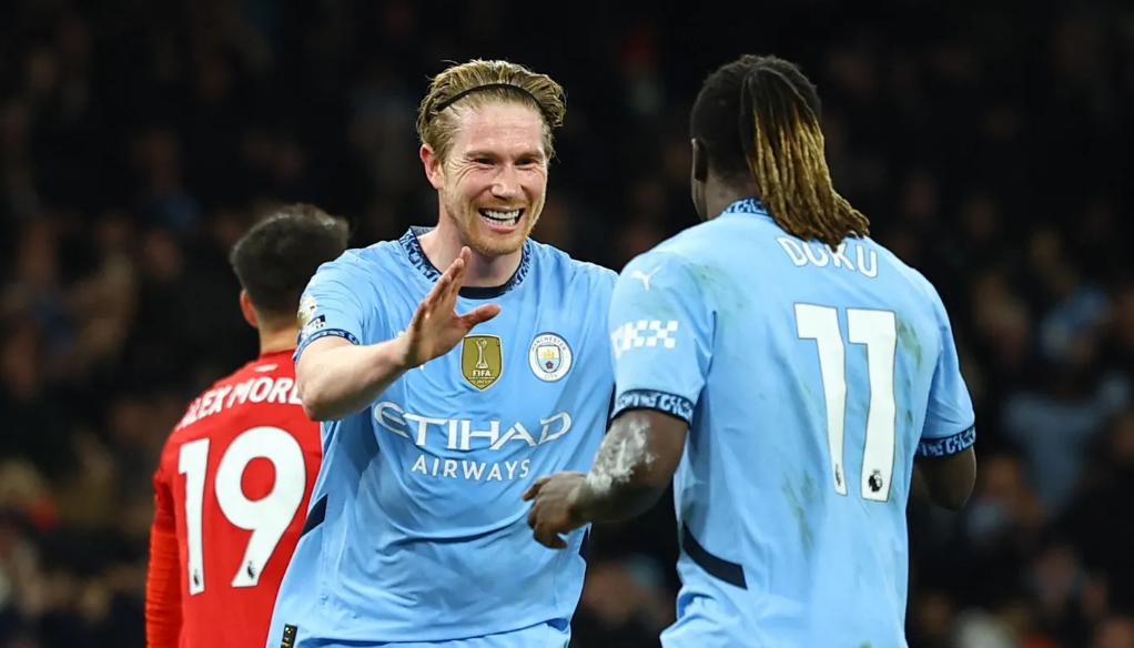 第30分鐘,德布勞內(nèi)的回傳失誤讓諾丁漢森林的伍德獲得單刀機(jī)會(huì),但后者的射門(mén)稍稍偏出。浪費(fèi)扳平良機(jī)的客隊(duì)1分鐘后受到懲罰,德布勞內(nèi)禁區(qū)內(nèi)勁射破門(mén),將比分改寫(xiě)為2:0。