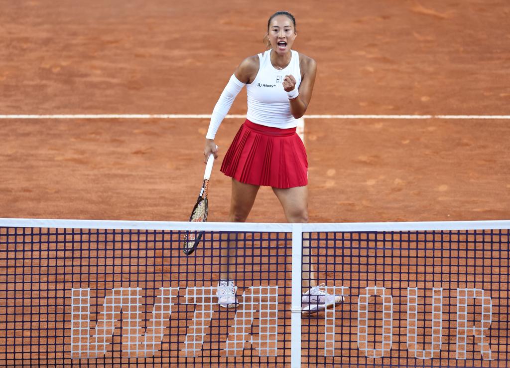 此前雙方兩次交手,各取一勝,此役是兩人首次在紅土場地交鋒。首盤比賽鄭欽文狀態(tài)火熱,以5:0遙遙領(lǐng)先。此后弗萊徹連保帶破,將比分追至3:5。第九局,鄭欽文拿下發(fā)球勝盤局,以6:3先下一城。