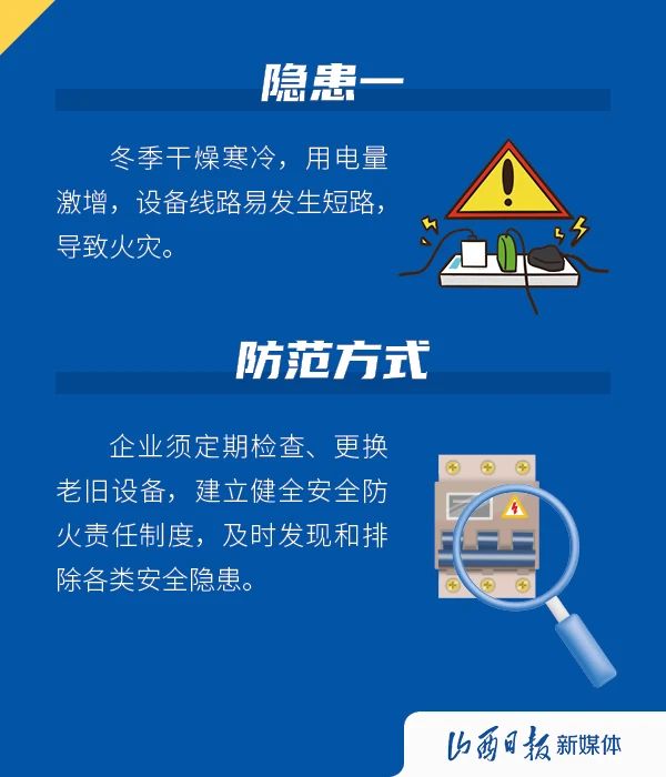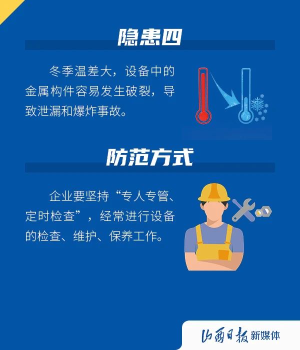 進(jìn)入冬季,氣溫下降,晝夜溫差大,冷暖變化不規(guī)律,一些事故發(fā)生概率會因?yàn)榧竟?jié)性因素而升高,影響企業(yè)的安全生產(chǎn),下面這些隱患需注意。
