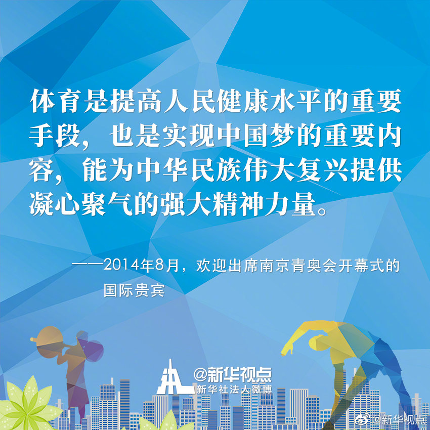 今年8月8日是我國第12個“全民健身日”。黨的十八大以來,以習近平同志為核心的黨中央高度重視關(guān)心體育工作,謀劃、推動體育事業(yè)改革發(fā)展,將全民健身上升為國家戰(zhàn)略,推動全民健身和全民健康深度融合。今天,一起來重溫習近平總書記關(guān)于推進全民健身、體育強國事業(yè)的金句?