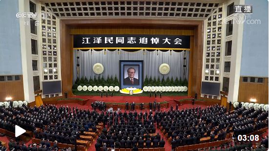 12月6日上午10時(shí),黨中央、全國(guó)人大常委會(huì)、國(guó)務(wù)院、全國(guó)政協(xié)、中央軍委在北京人民大會(huì)堂隆重舉行江澤民同志追悼大會(huì)。