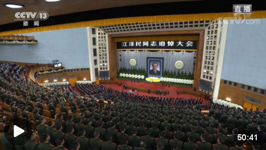 12月6日上午10時,黨中央、全國人大常委會、國務院、全國政協(xié)、中央軍委在北京人民大會堂隆重舉行江澤民同志追悼大會。