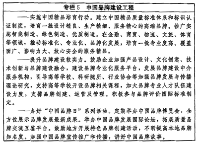 ——品牌建設(shè)取得更大進展。品牌培育、發(fā)展、壯大的促進機制和支持制度更加健全,品牌建設(shè)水平顯著提高,企業(yè)爭創(chuàng)品牌、大眾信賴品牌的社會氛圍更加濃厚,品質(zhì)卓越、特色鮮明的品牌領(lǐng)軍企業(yè)持續(xù)涌現(xiàn),形成一大批質(zhì)量過硬、優(yōu)勢明顯的中國品牌。